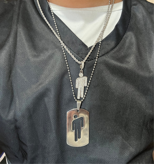 Billie eilish dogtag and silver bnecklace bundle includes 2 necklaces silver&dogtag